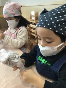 粉に水分を加えてひとつのお団子になるまで、根気よくこねることが出来ました。