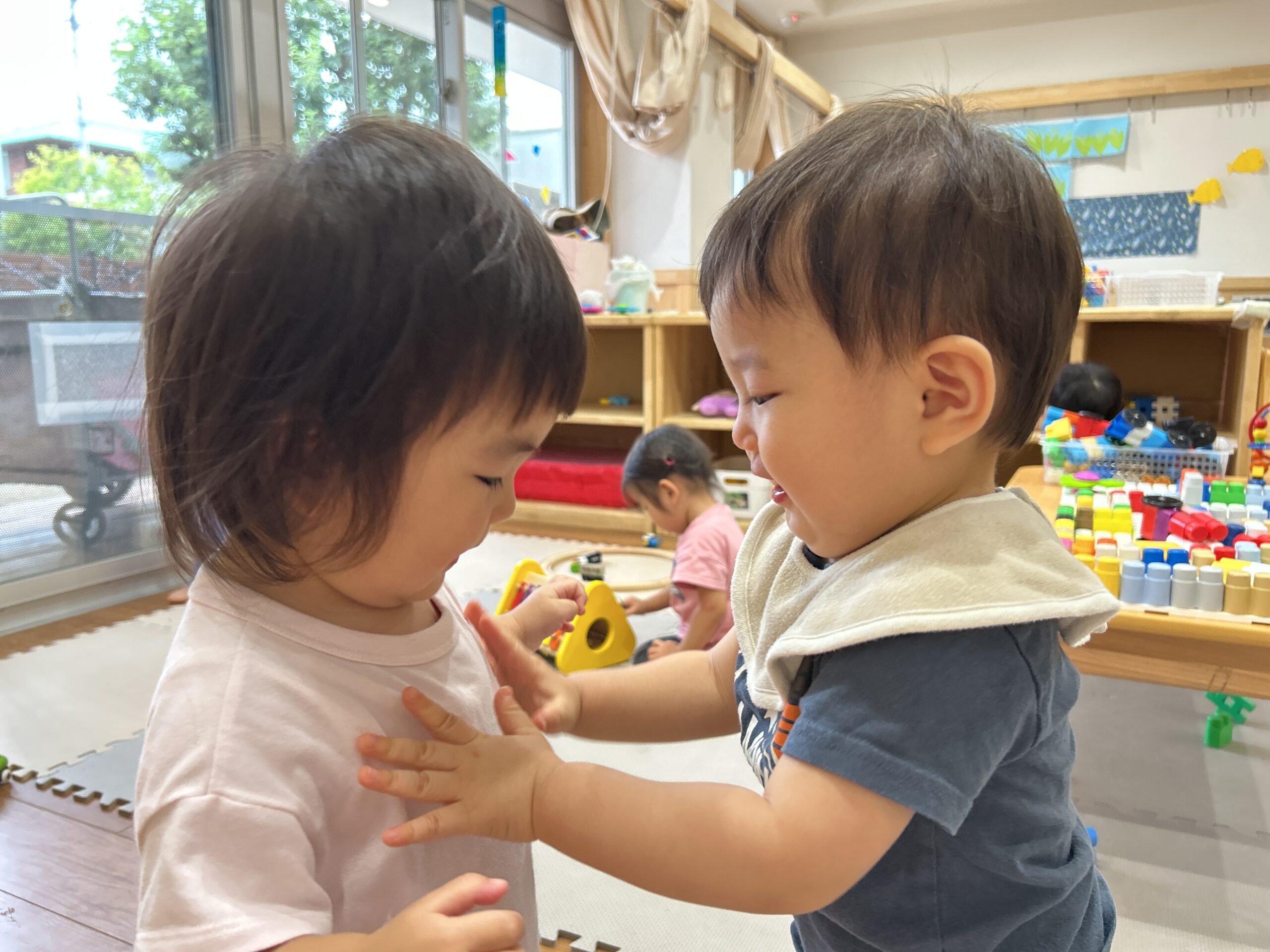 お友達と顔を見合わせて笑い合ったり、ハイタッチをしたり、ハグをしたりして仲良く過ごしています!