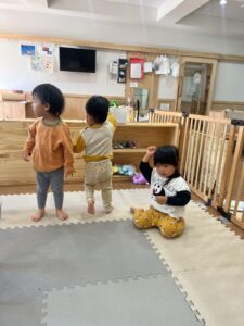 ゾウ、くま、うさぎ、さる、かえる、オオカミなど様々な動物になりきる表現遊びを楽しんでいます。
