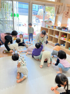 こうした表現遊びを通して、子どもたちは想像力を豊かにし体の使い方を自然と身につけています。短い時間の中でも子どもたちが楽しめるように活動を工夫して考えています。
