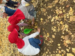 大きなカブごっこが大好きなので、ある時に保育者が作ったカブを土の中に埋めると「カブだー」と大盛り上がり。早速カブを抜こうと友達と集まって大きなカブごっこが始まりました。今後も子ども達の興味のある遊びを広げていきたいと思います。