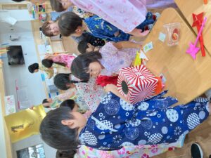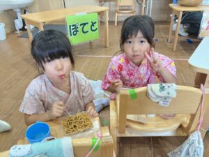 日頃からおままごとでお店屋さんごっこがブームになっています。そこでクム祭りにてマーレ組のお店屋さんを開店することになりました!年下のお友達に店員さんといて案内してあげる姿が見られましたよ。
