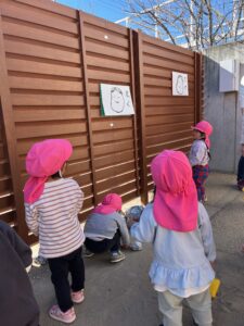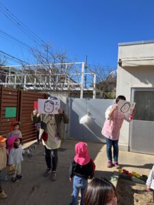 退治した鬼は園庭に逃げてきたようで園庭でも豆まきをしました。